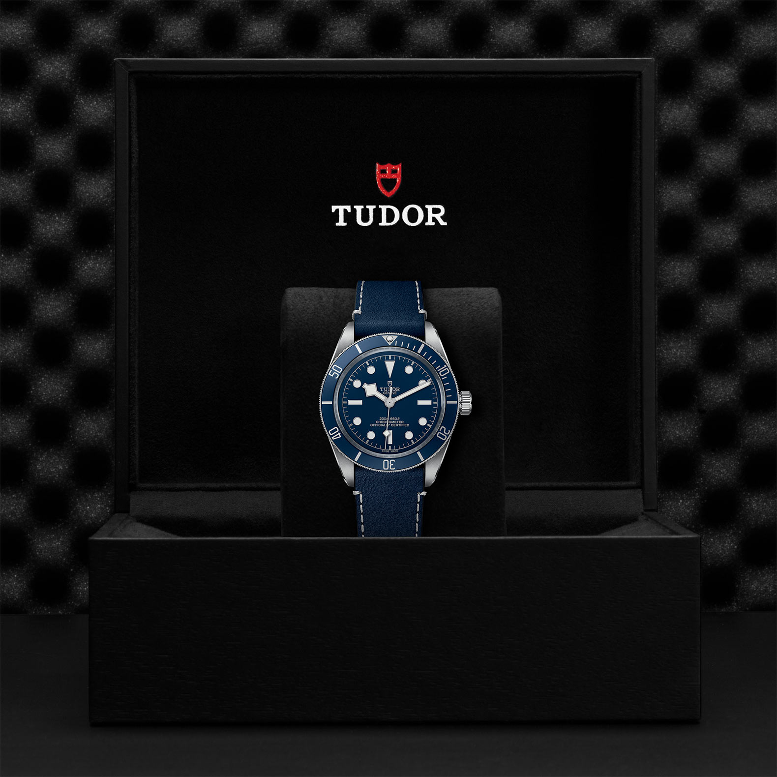 Bezel: Unidirectional rotatable bezel in steel with 60-minute graduated disc in matt blue anodised aluminium and silver gilded markings and numerals